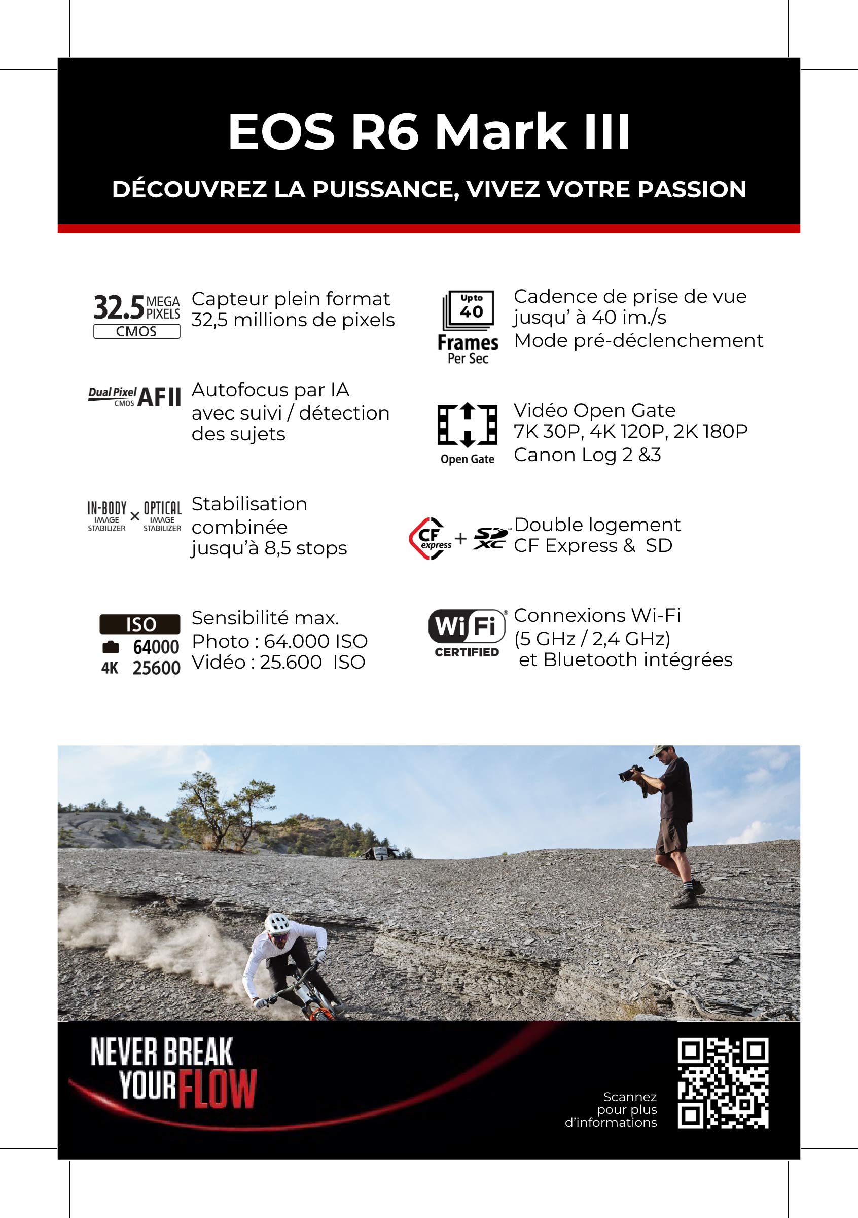 | Contenu de la boite d'origine | Batterie LP-E6NH, Bouchon boitier, Chargeur de batterie, Courroie de cou, Mode d'emploi |